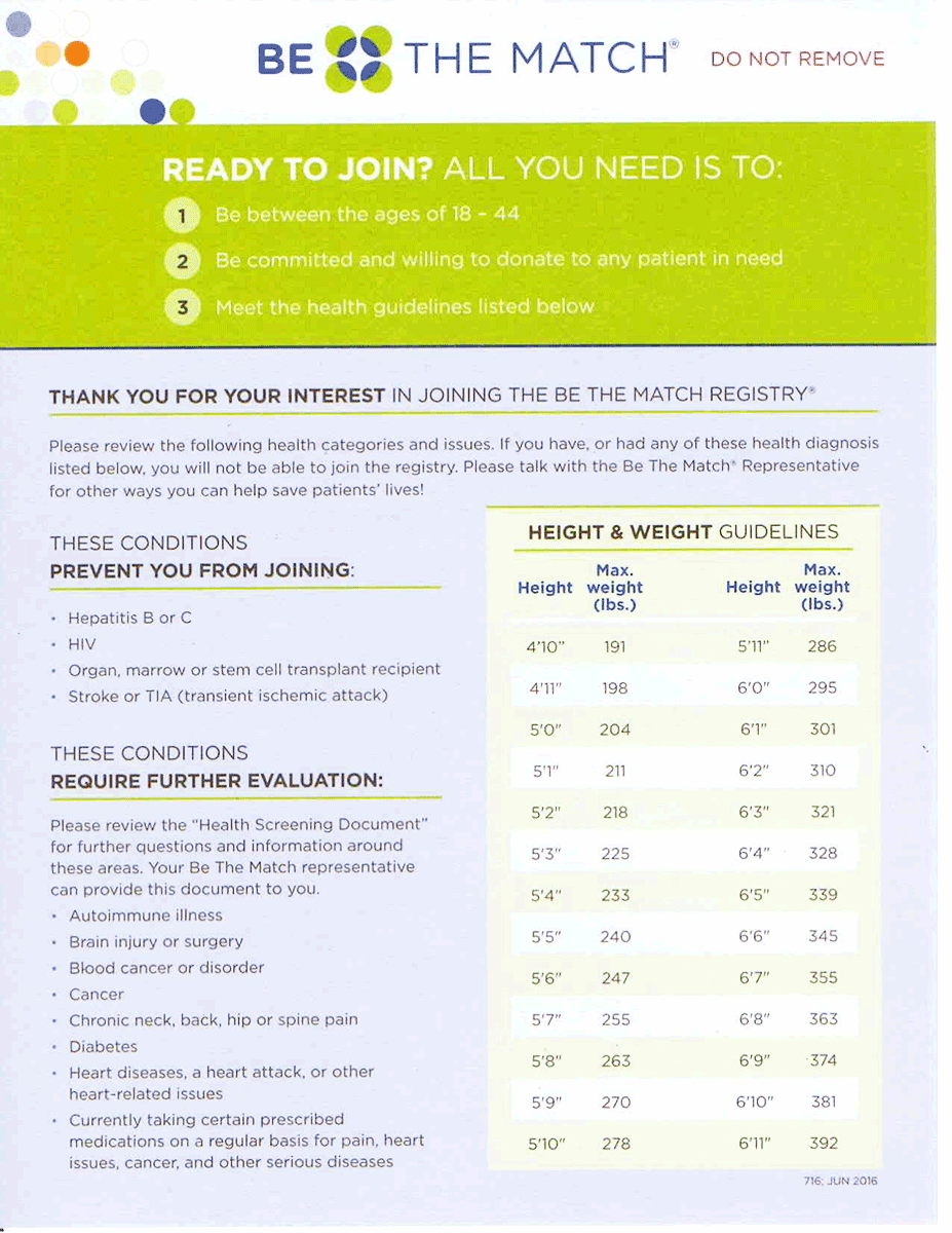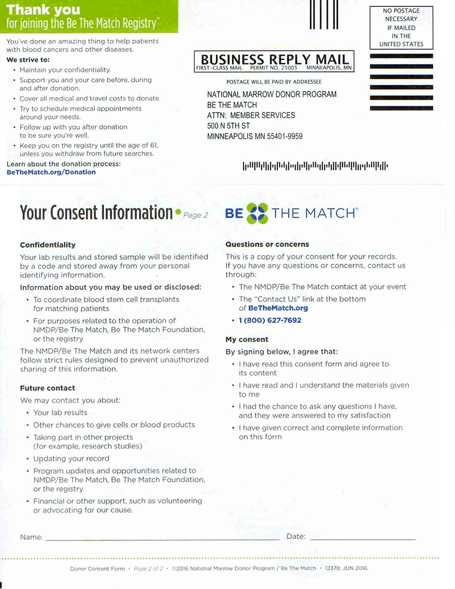 The purpose of this page is to walk you through what you should know before commiting to join the bone marrow registry today. That includes a full understanding of the commitment, the health guidelines that you must meet in order to join the registry, how to complete the forms and swab kits, and what to expect afterwards.